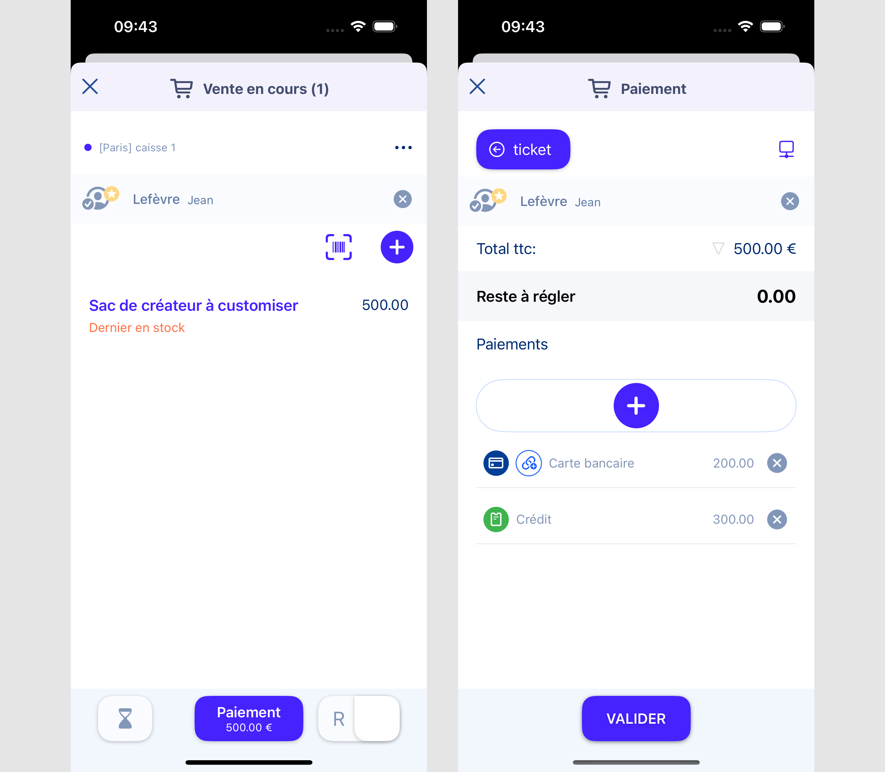 Imaginons-nous que nous sommes 2 semaines plus tard, et que le client vienne récupérer son article, et régler la somme en reste à devoir (les 300€ dans notre exemple).