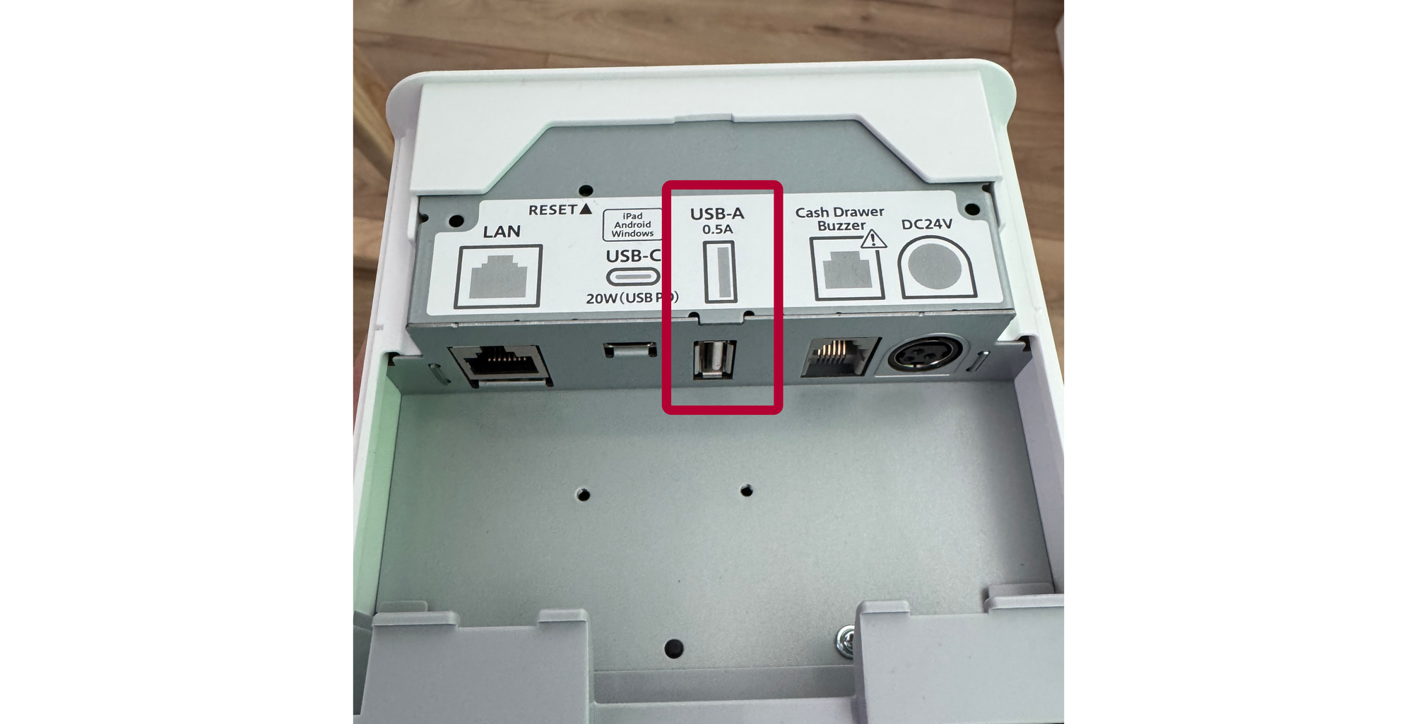 Il se branche en usb, directement à l'arrière de l'imprimante ticket.