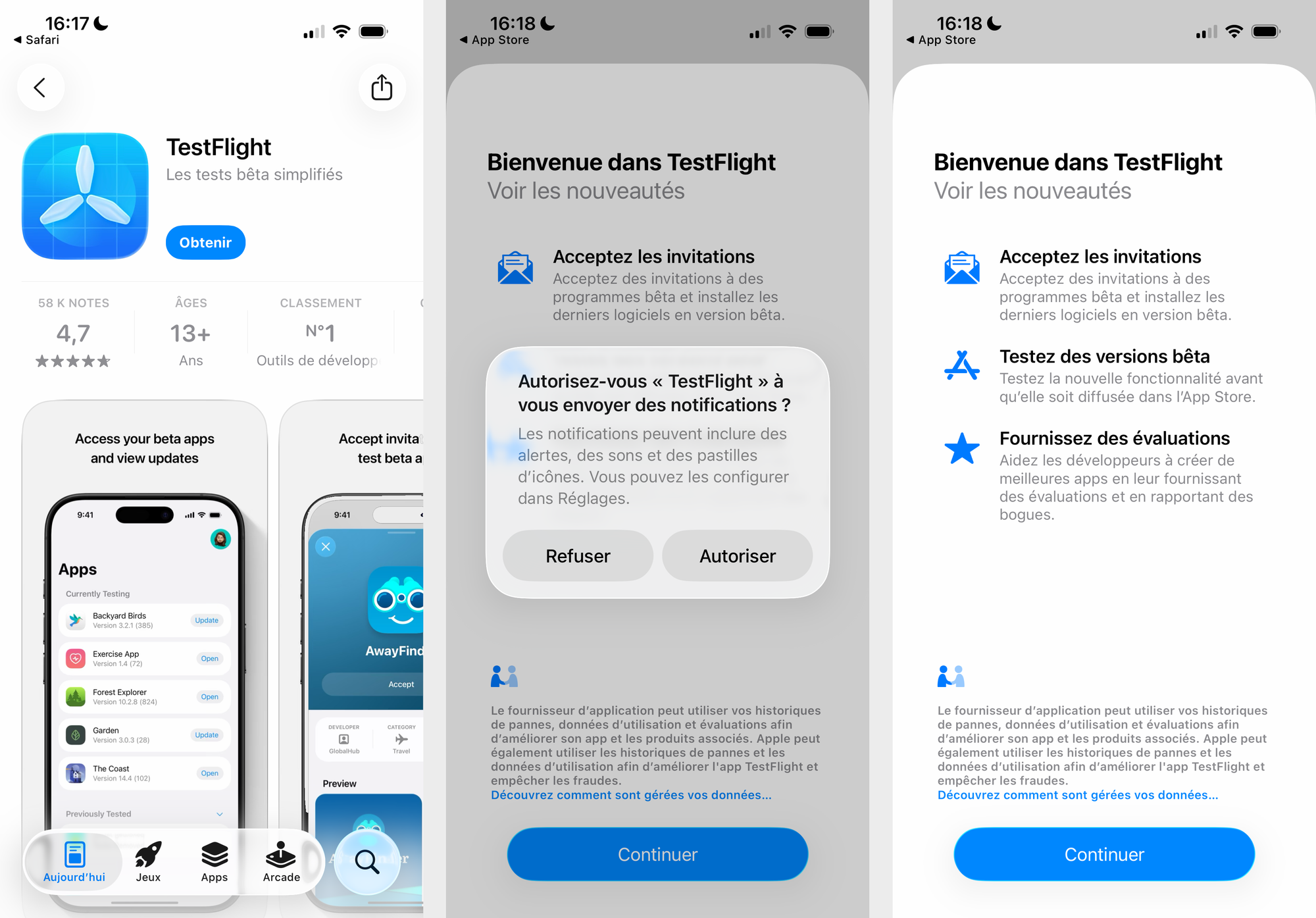 Chose importante avant de commencer, il vous faut avoir téléchargé et installé l'application Testflight (disponible sur l'app store ici).